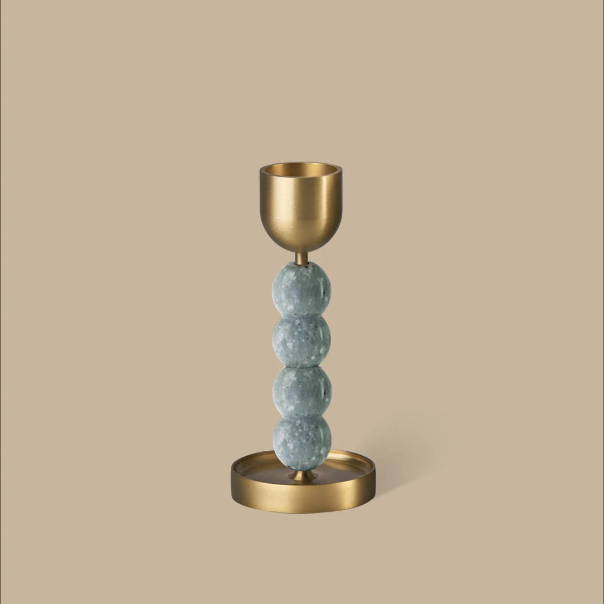 A take on the signature beaded candle holder from Black Blaze, this time featuring marble beads in a gourd-shaped design.