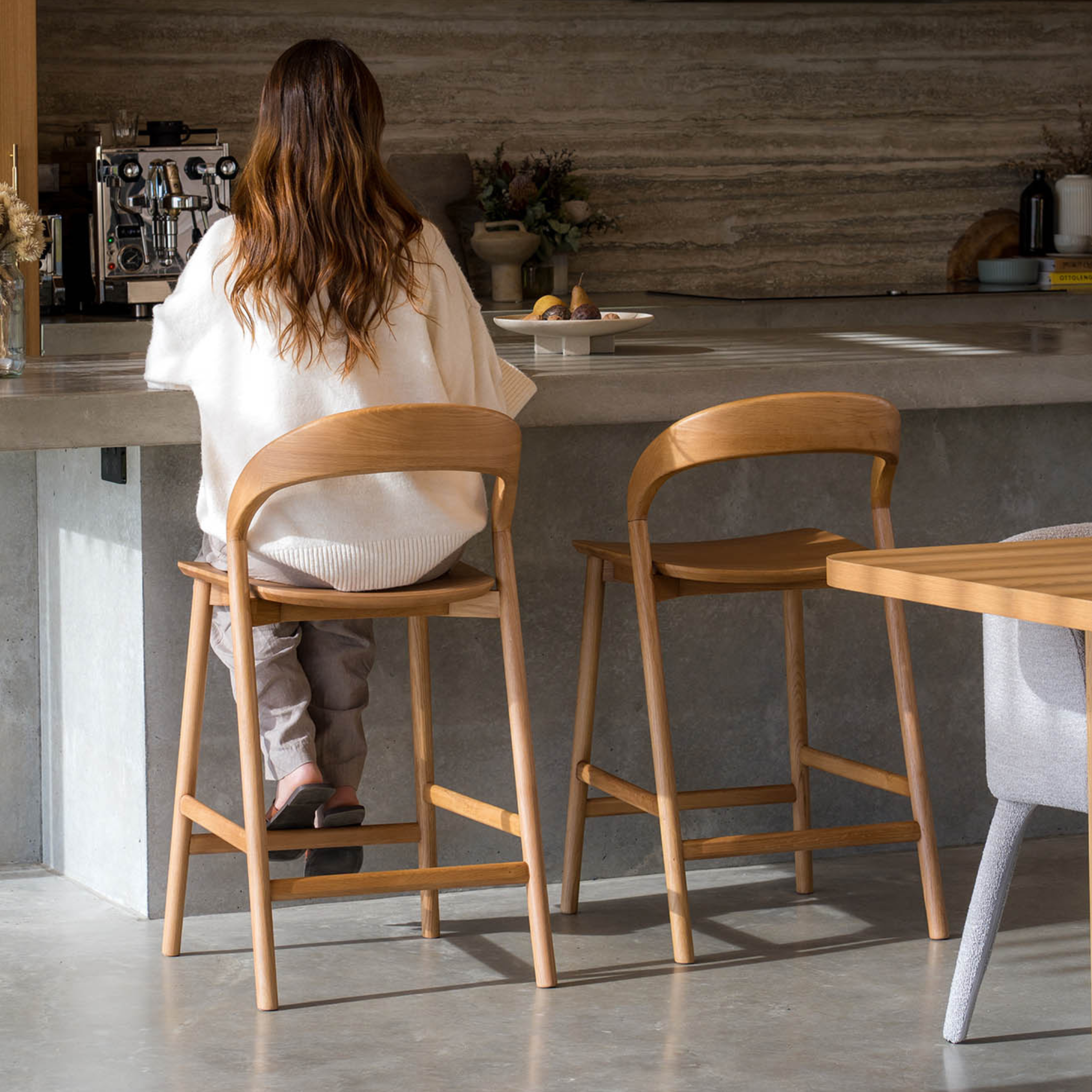 The Tempo Barstool features a solid oak backrest that wraps around to create exceptional comfort and support. Crafted from premium American Oak with a fine, strong, and visible grain, this barstool is available in natural and black oak finishes with upholstered seating options for added luxury.