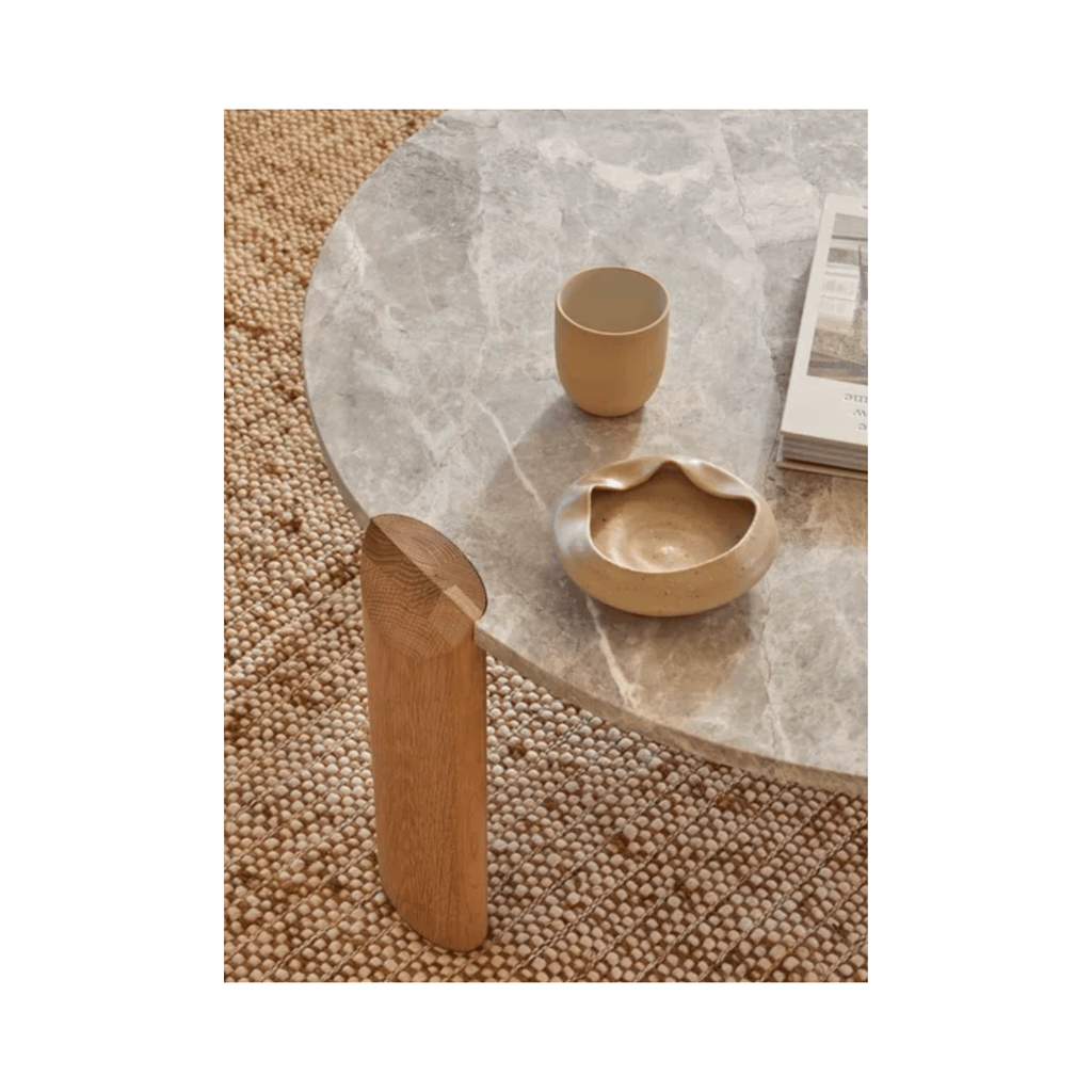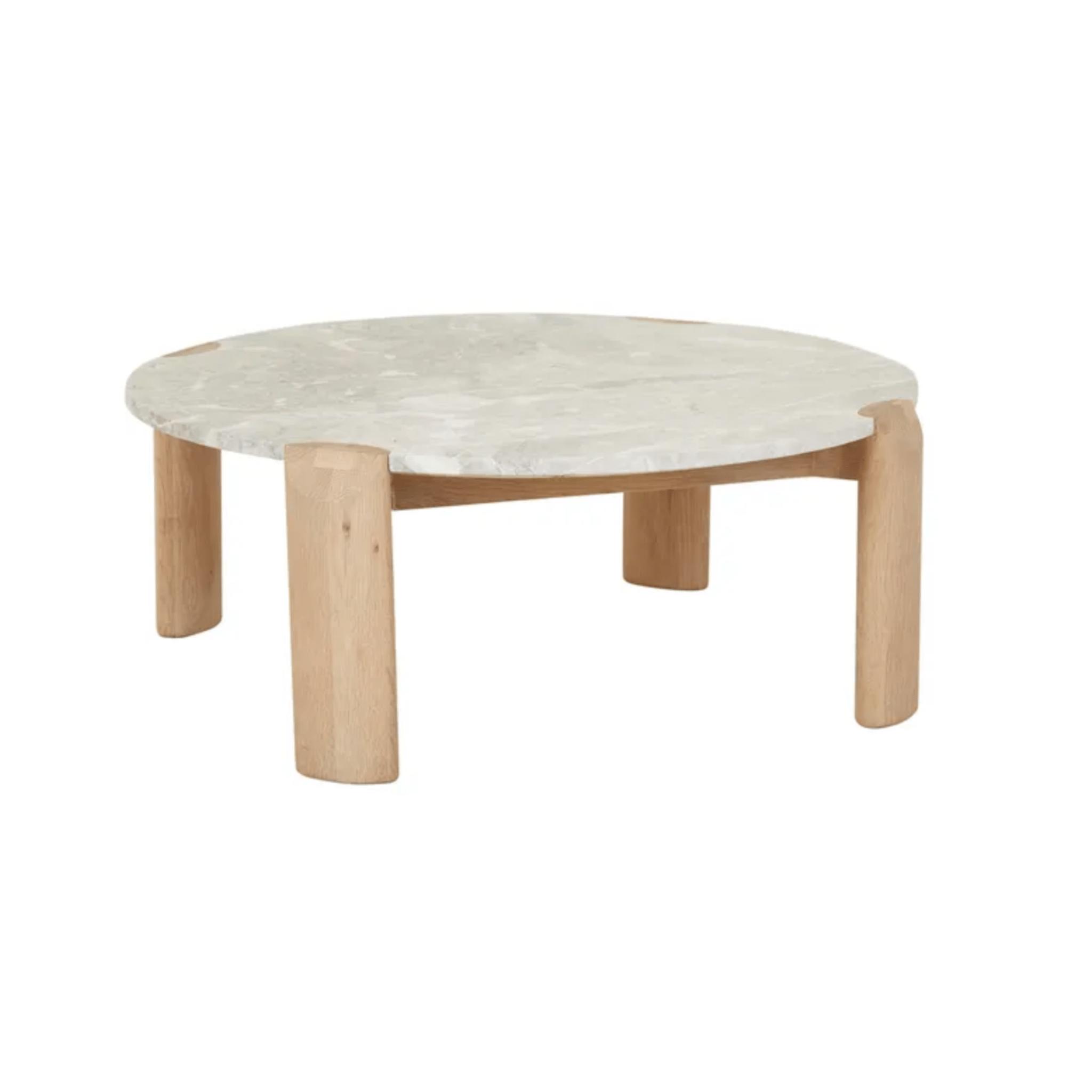 Elevate your living space with the Willa Marble Coffee Table by GlobeWest, a harmonious blend of natural materials and contemporary design. Featuring a smooth grey marble top paired with solid light oak legs, this round side table exudes timeless elegance and modern sophistication.