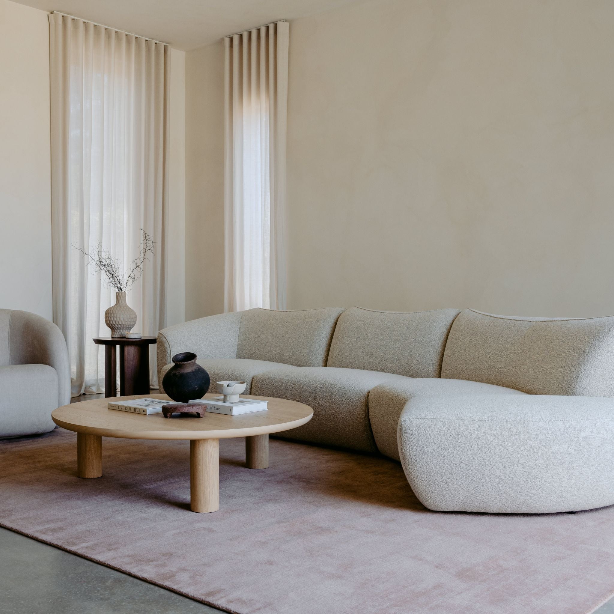 Finished with discreet, low timber bun legs, Paloma maintains a grounded, contemporary silhouette that feels both refined and relaxed. Its timeless shape makes it equally suited to modern, minimalist, or softly layered interiors.