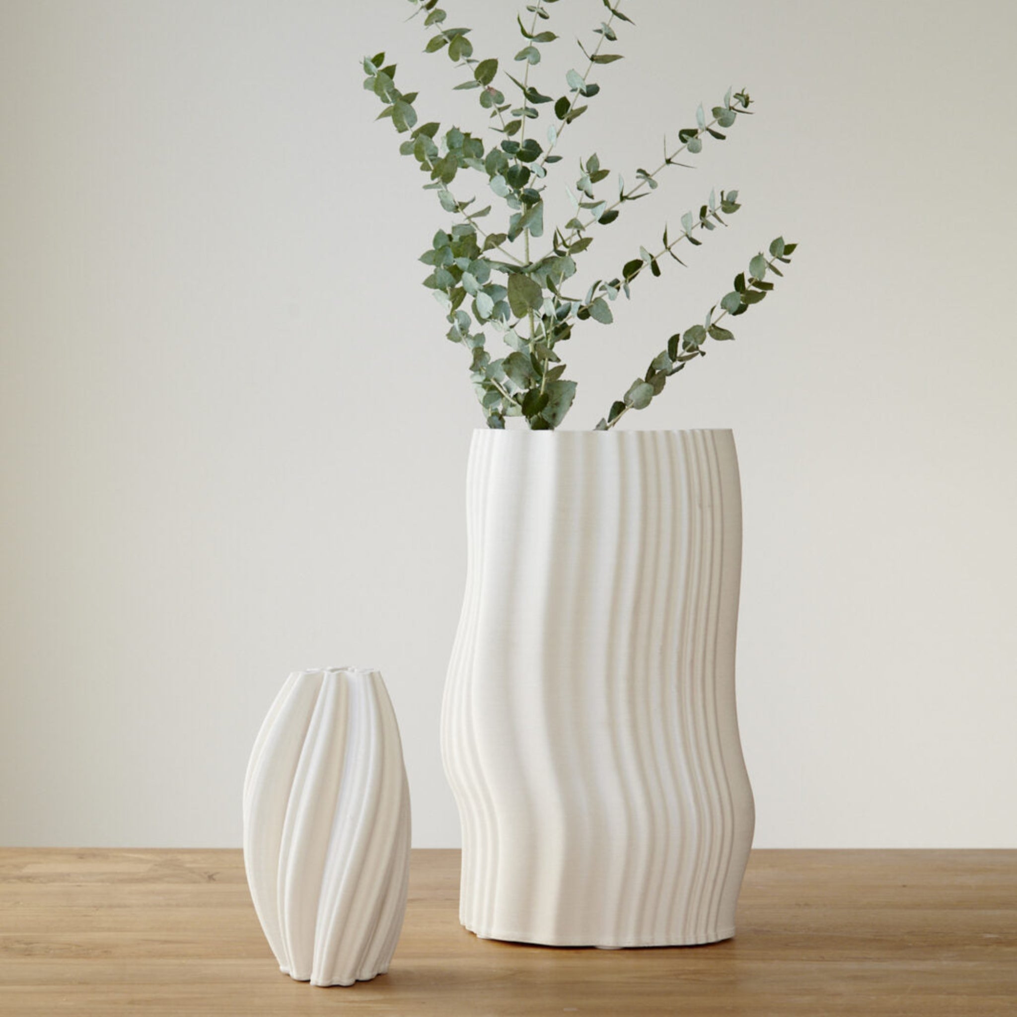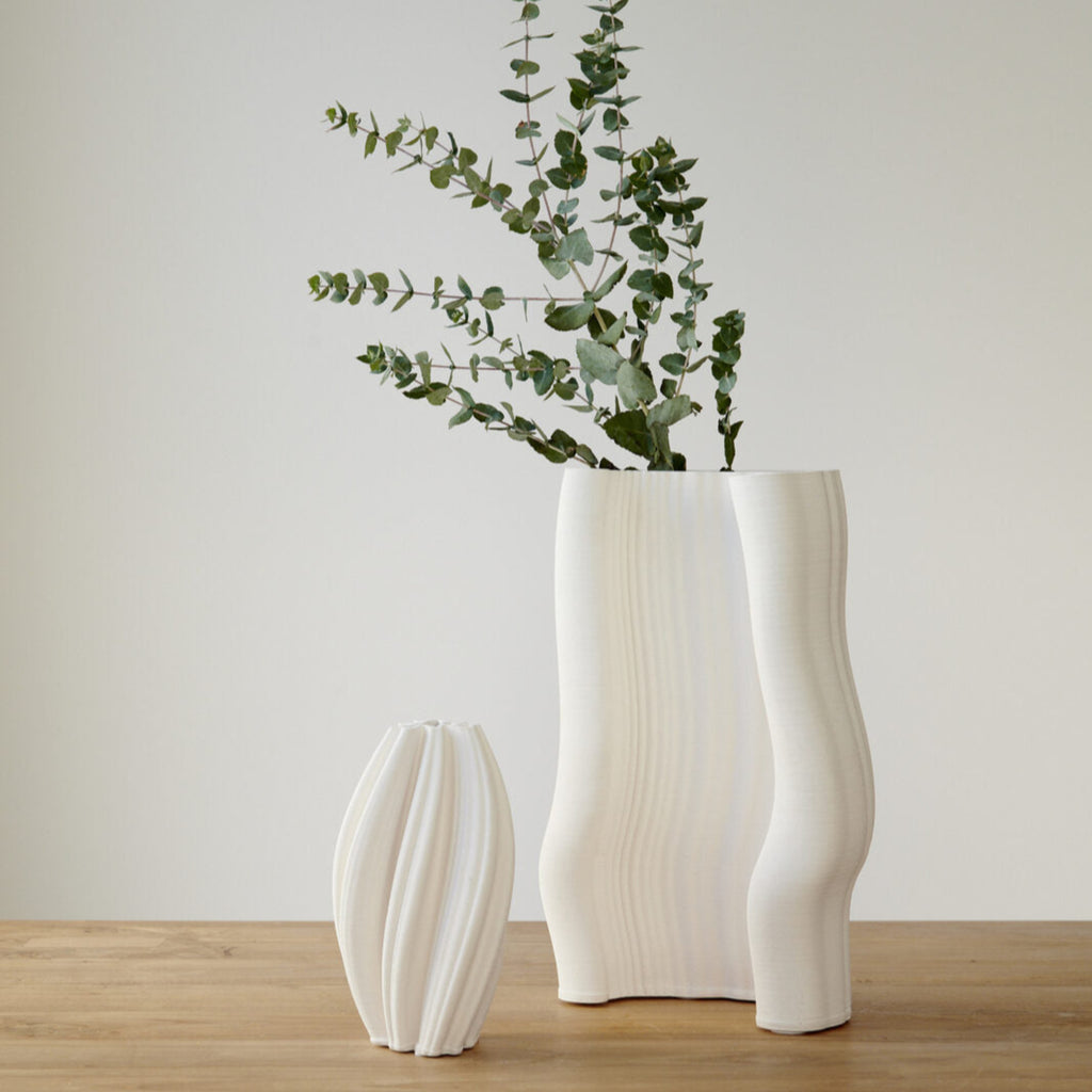This collection of vases combines both cutting-edge 3D printing technology as well as individual craftsmanship involved in the creation of each vase. Because of this process, slight variations in shape and finish may occur. These variations are a testament to the artisanal nature of the production process