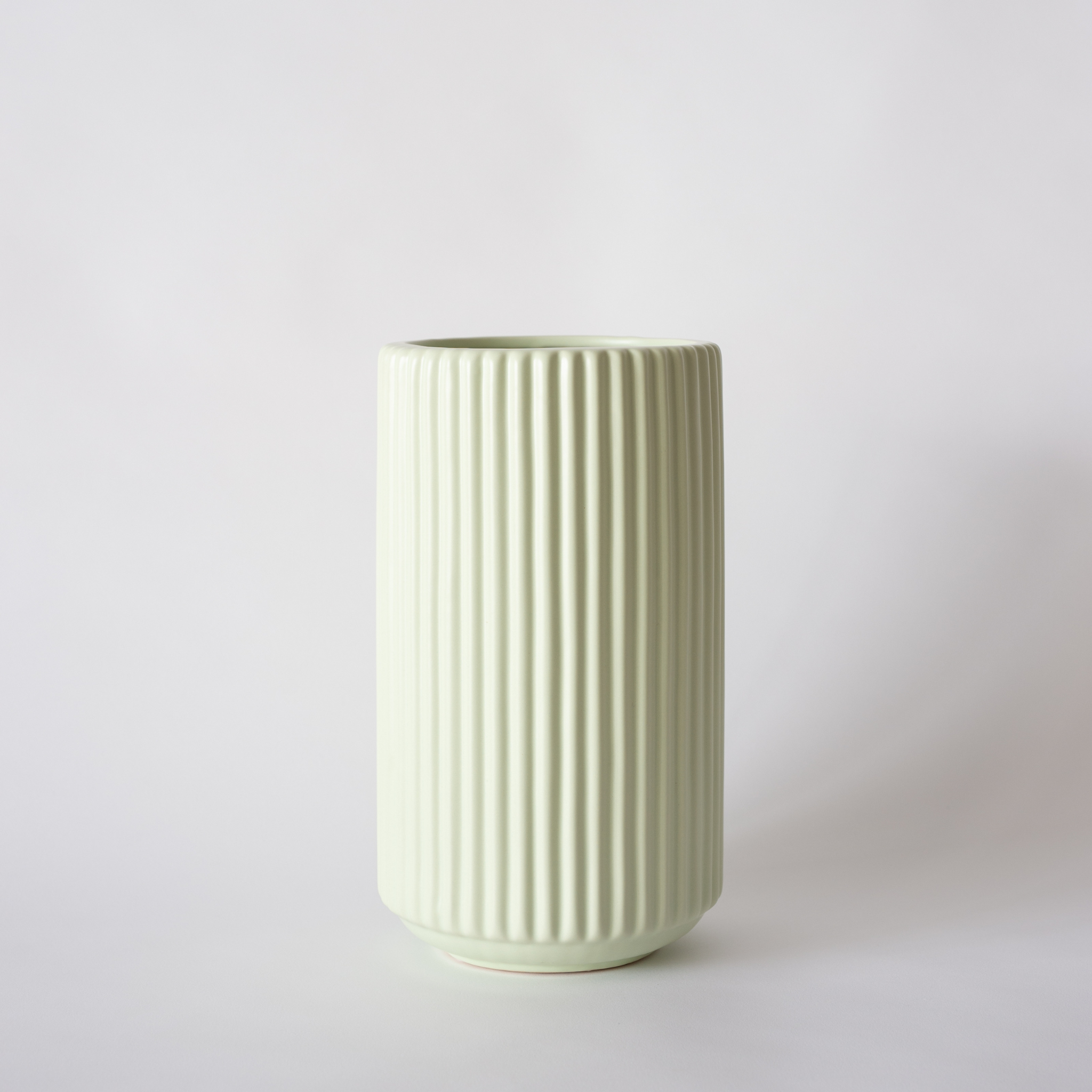 The Lara vase - cool mint, a beautiful, soft, dusty tone, with a ribbed texture and elongated composition - the ribbed outer of the Lara Vase allows for the perfect shadowing detail.