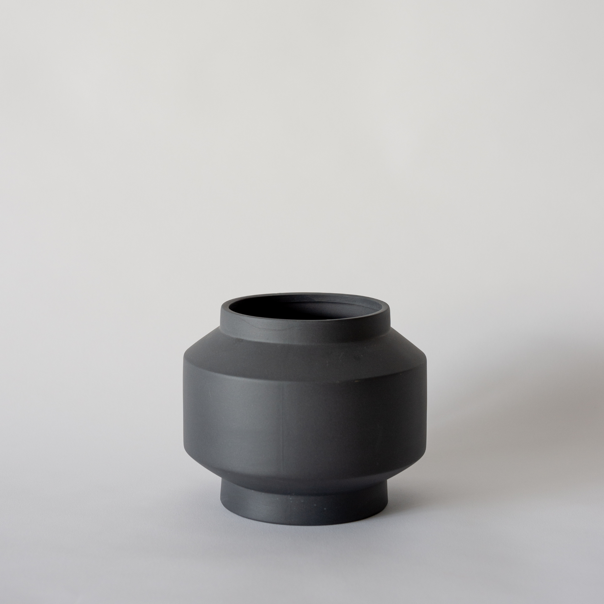 The Sienna vase, in a hue of midnight black, displays a sleek and modern design.