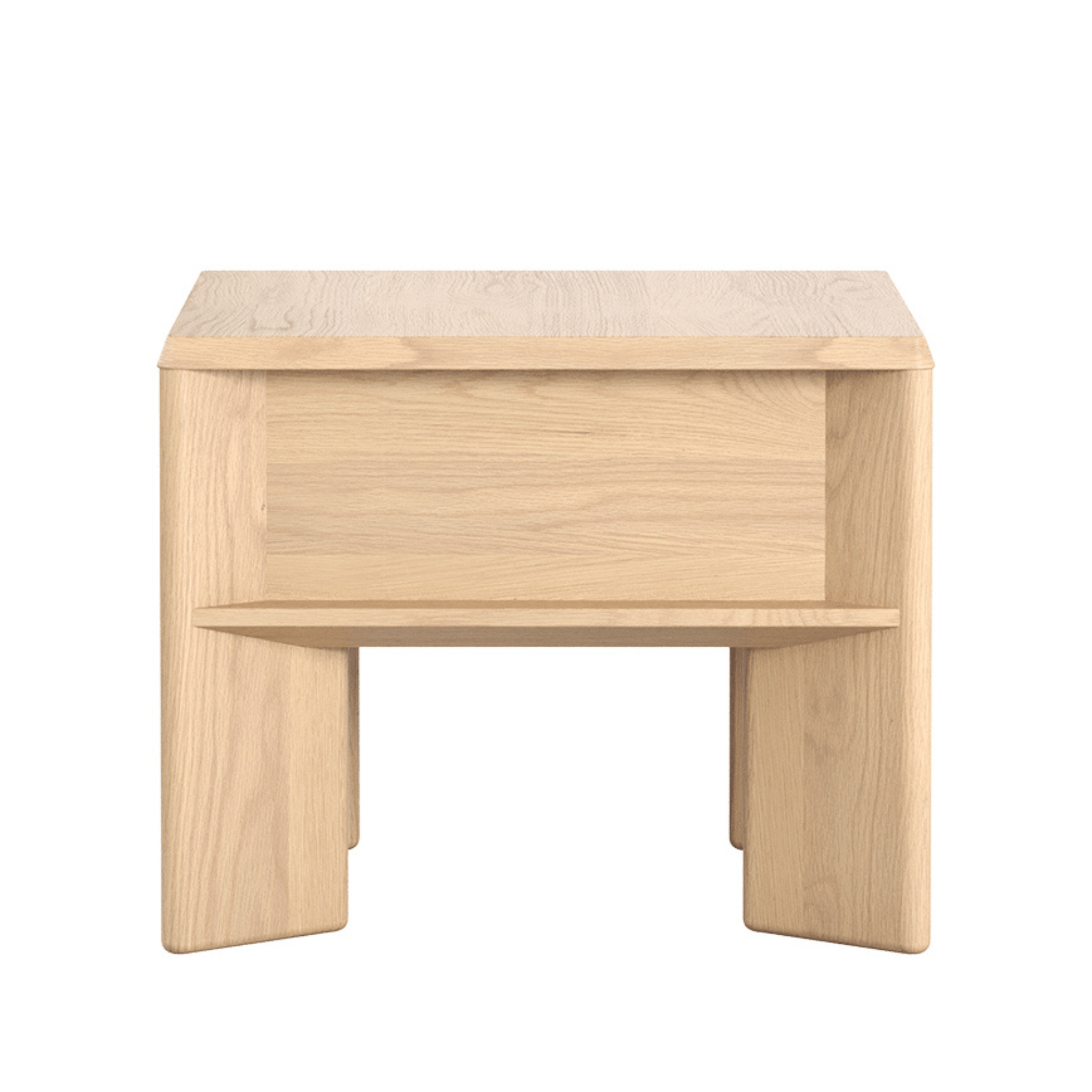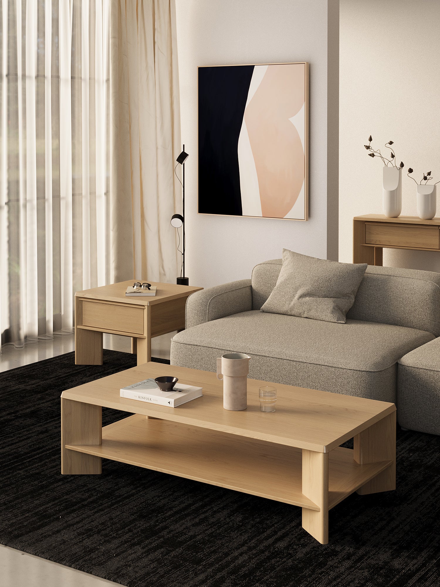 The Lenny Side Table is a design-forward focal point combining sculptural form with everyday practicality. Crafted in solid oak with a soft crema finish—a subtle whitewash that beautifully enhances the wood’s natural grain while keeping the tone light and timeless—the piece brings warmth and modernity to any space.