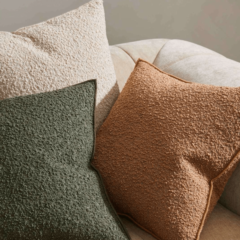 The Alberto cushion in Copper, has a trending yet timeless plain boucle texture - soft to touch and comforting to hold with its feather infill. Its Ivory colour is the perfect neutral to pair with any colour scheme.