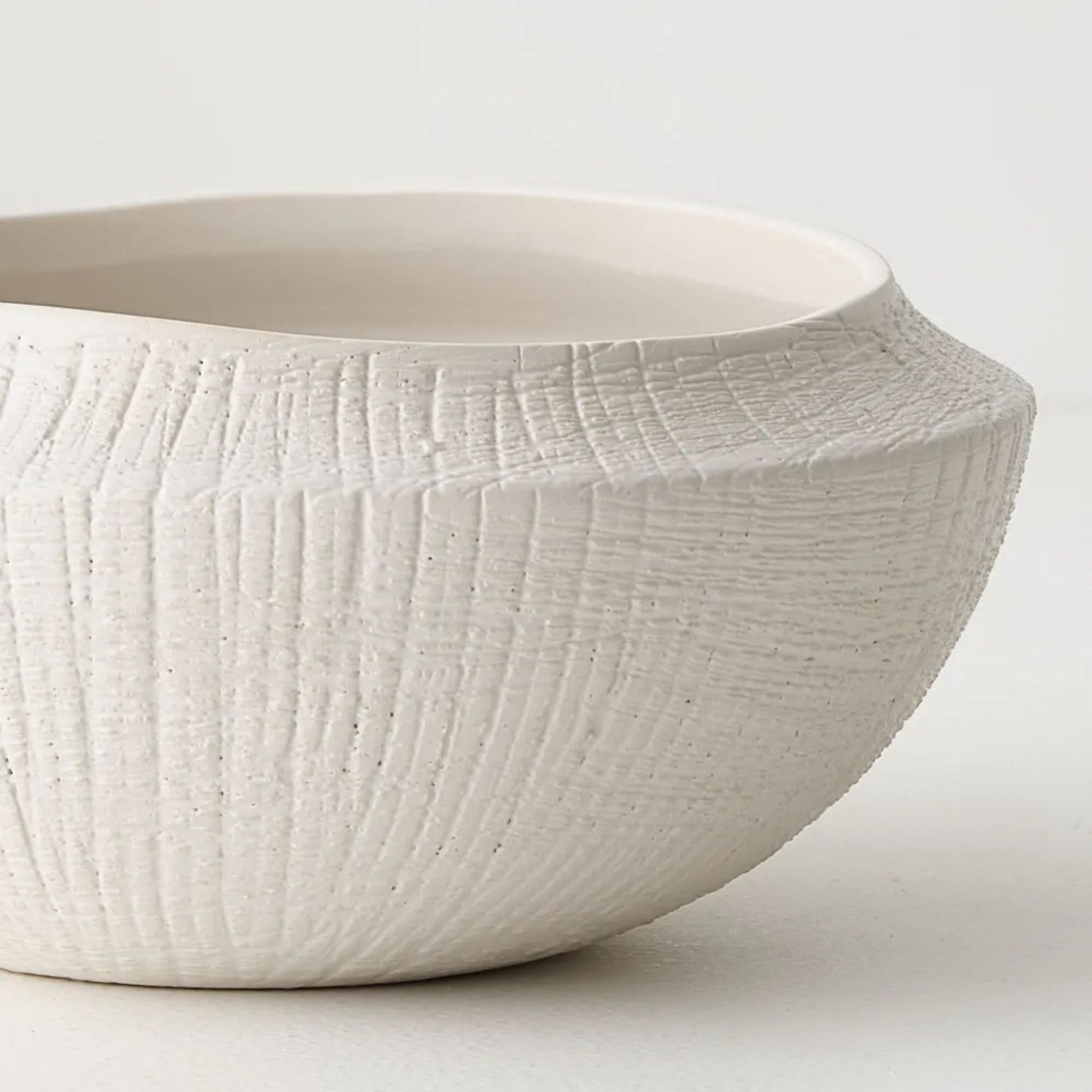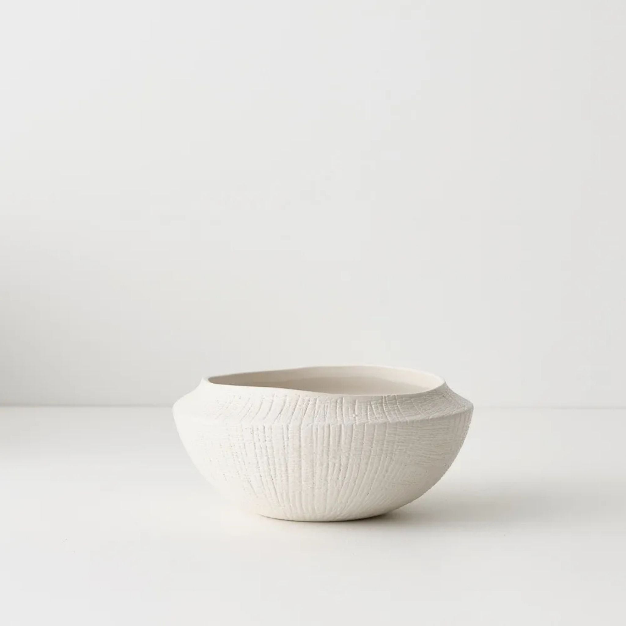 The Avola Bowl in white features a distinctive wavy ceramic form, adding soft movement and sculptural appeal to any space. Designed with a low profile and flat base, this versatile decorative bowl works beautifully as both a functional serving piece and a statement styling accent.