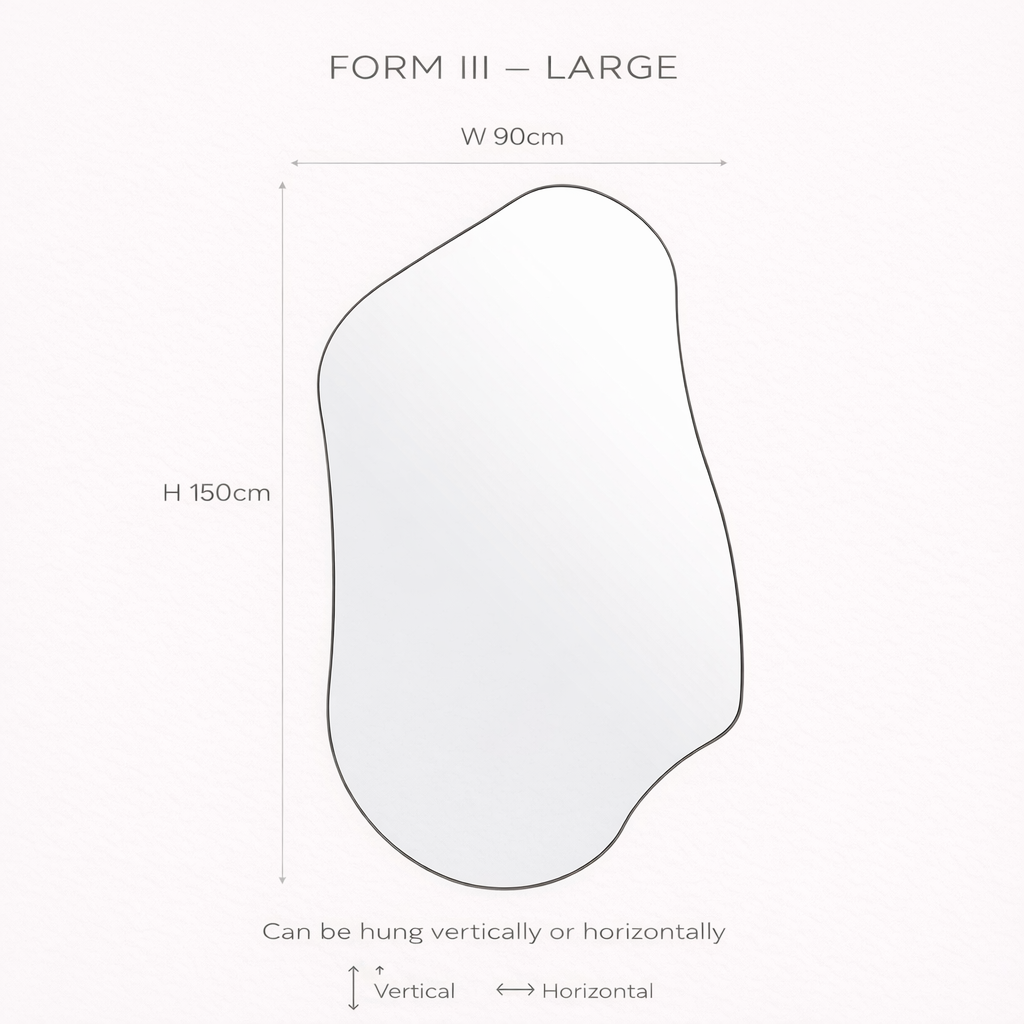 The Form III Mirror features a soft organic silhouette framed in slim matte black stainless steel, introducing a refined architectural presence while maintaining the durability required for everyday Australian living.