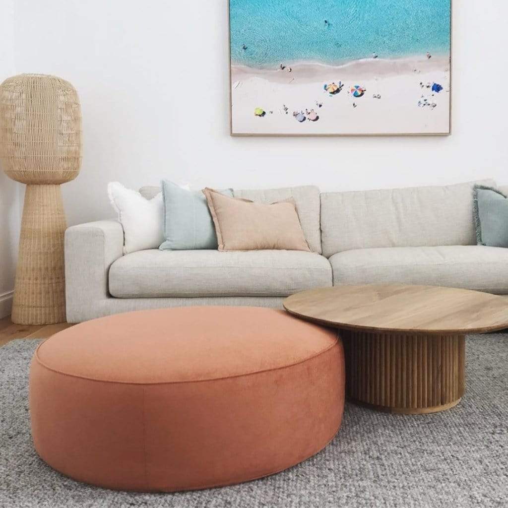 Locally made here in Perth, our Pod I Ottoman offers a versatile option for your living space. The size of the Pod I Ottoman allows it to be used as a seat, footstool, or even a coffee table when paired beautifully alongside and nestled underneath. Its design looks exceptional in any fabric, offering texture to your living room and fully customisable with your choice of fabric.