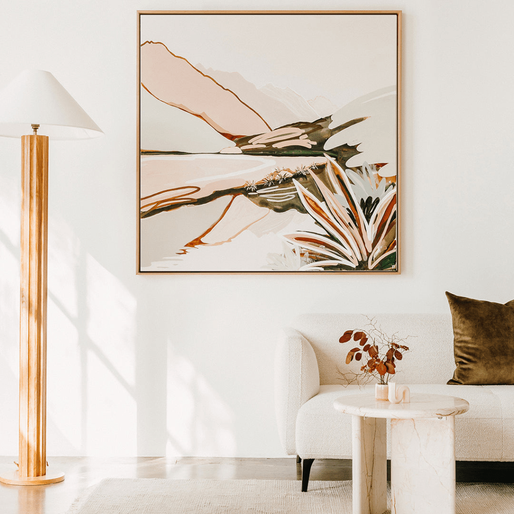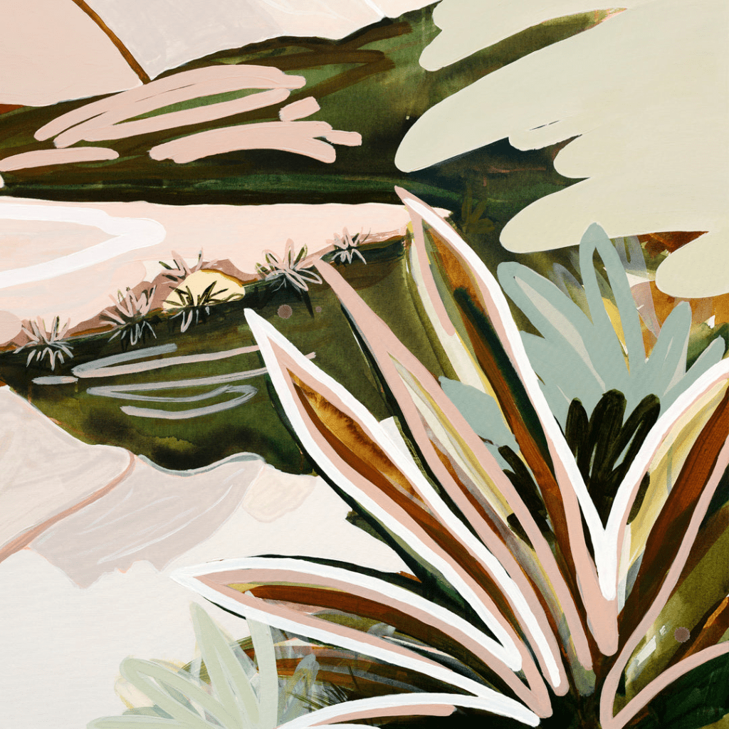 A semi-abstract landscape of Mirror Lakes in Fiordland from Jen's stunning Chasing Awe collection. Based on her recent tour of the beloved and awe-inspiring South Island of New Zealand.