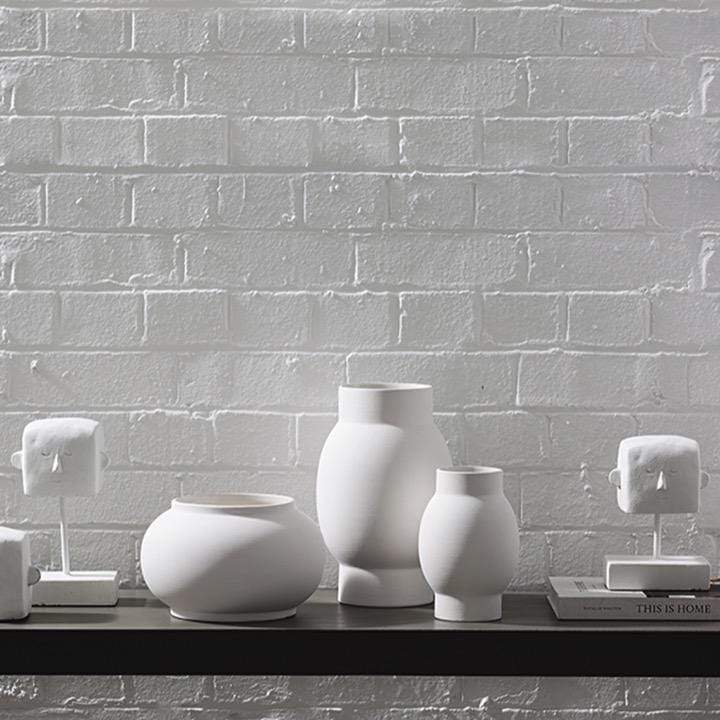 Matte white Arena Vases are available in three complimenting sizes.