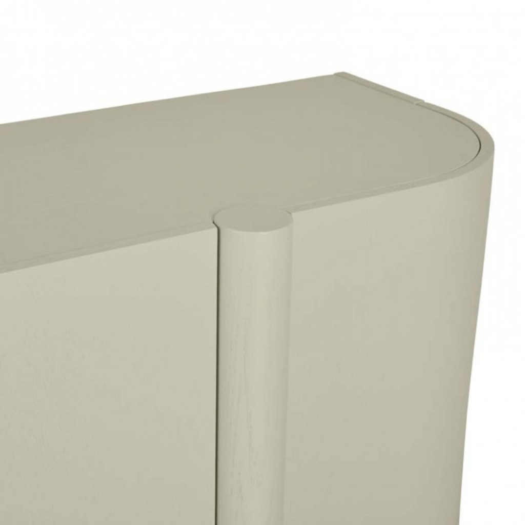 Sumptuous curves and interior room to accommodate dishes, serving pieces, and more are the distinctive elements of this elegant buffet ideal for any dining room. It sits on 4 slender legs and has sleek cupboard fronts that open to reveal the spacious interior.The Artie Buffet, Putty is a modern buffet, crafted in timber with a curved front offering ample storage.