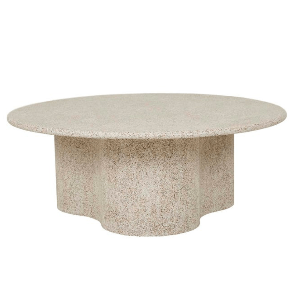 Modern and curve driven, this outdoor coffee table offers style and attitude to complete a seating area. Crafted in fibrestone with a curving base it's the perfect piece to make a statement and add contemporary flair.