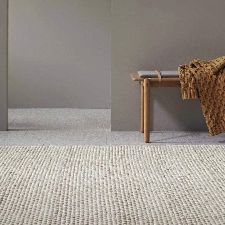 The Emerson Rug has a subtle textured pattern. It is made out of 60% wool and 40% viscose with a full cotton backing and edging for a longer life and wear and tear.