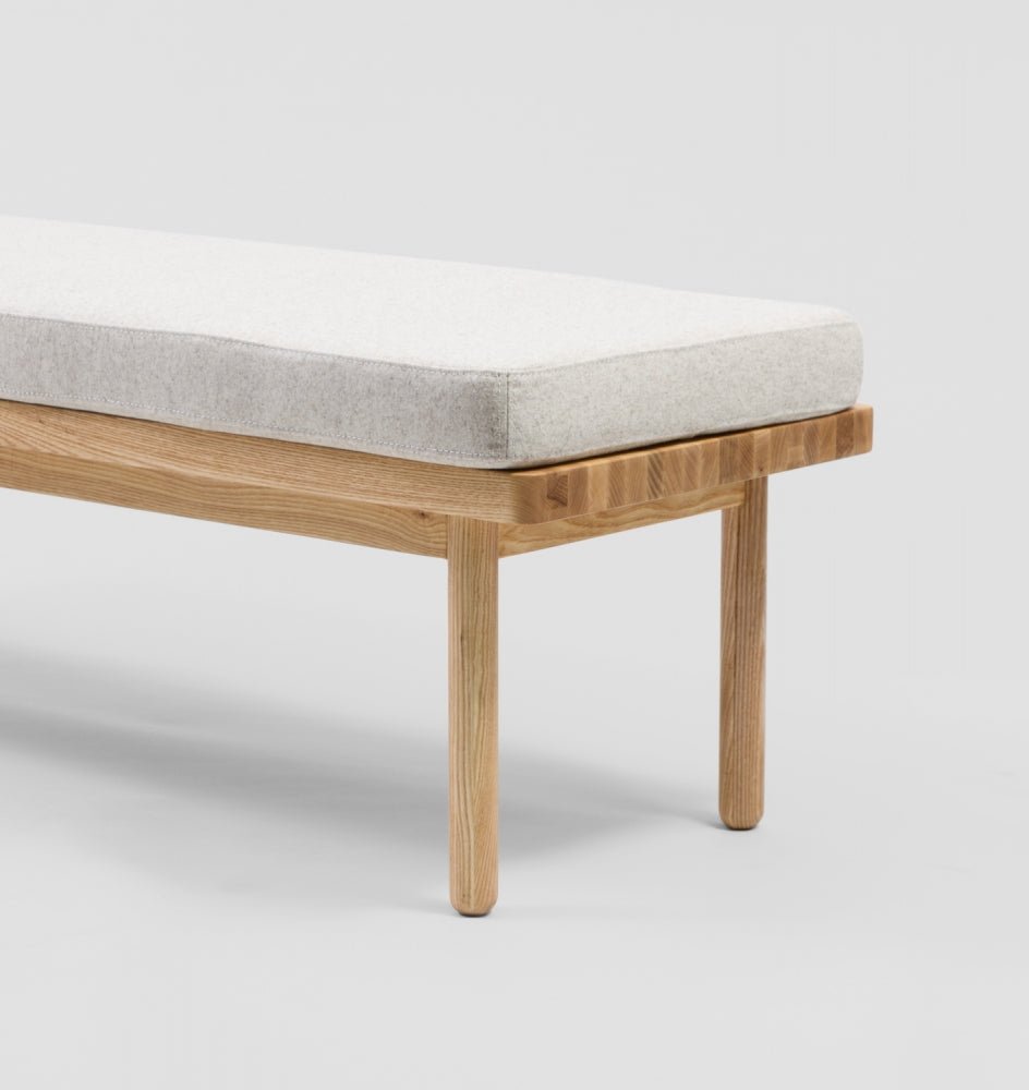 Our Scout benches are simple and adaptable pieces with rounded lines and classic proportions. The Scout series incorporates a varied colour palette across the range, with a removable upholstered wool felt cushion, on a solid Ash timber frame. Also available in Ecru / Timber