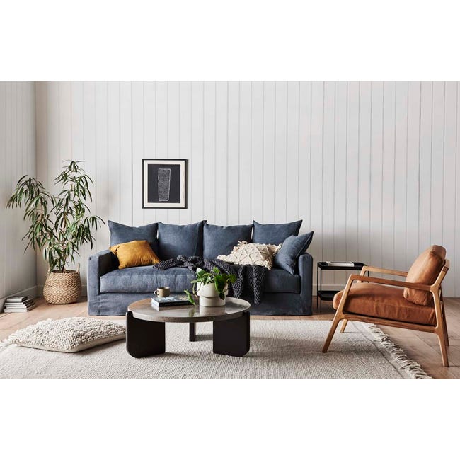 Featuring subtle geometric shapes, and plush cushions contrasted by the warmth of the timber frame, it boasts a minimalist, contemporary style that will accent any room in the house providing added seating or simply a luxurious decorative piece.