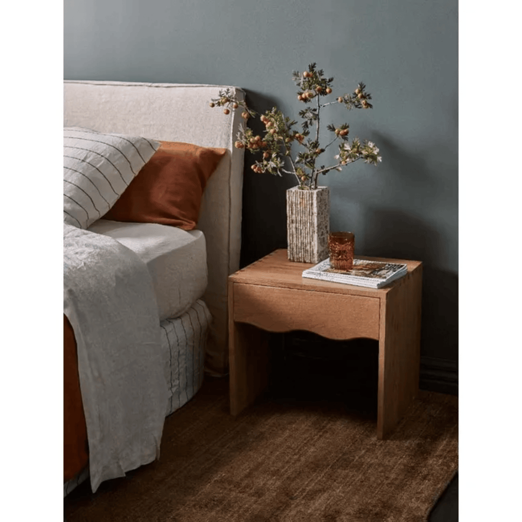 Solid wood construction and an undulating wave design set the Solstice Wave Bedside table apart. Beautifully crafted, the size and shape of this bedside table make it a lovely complement to any bedroom design.