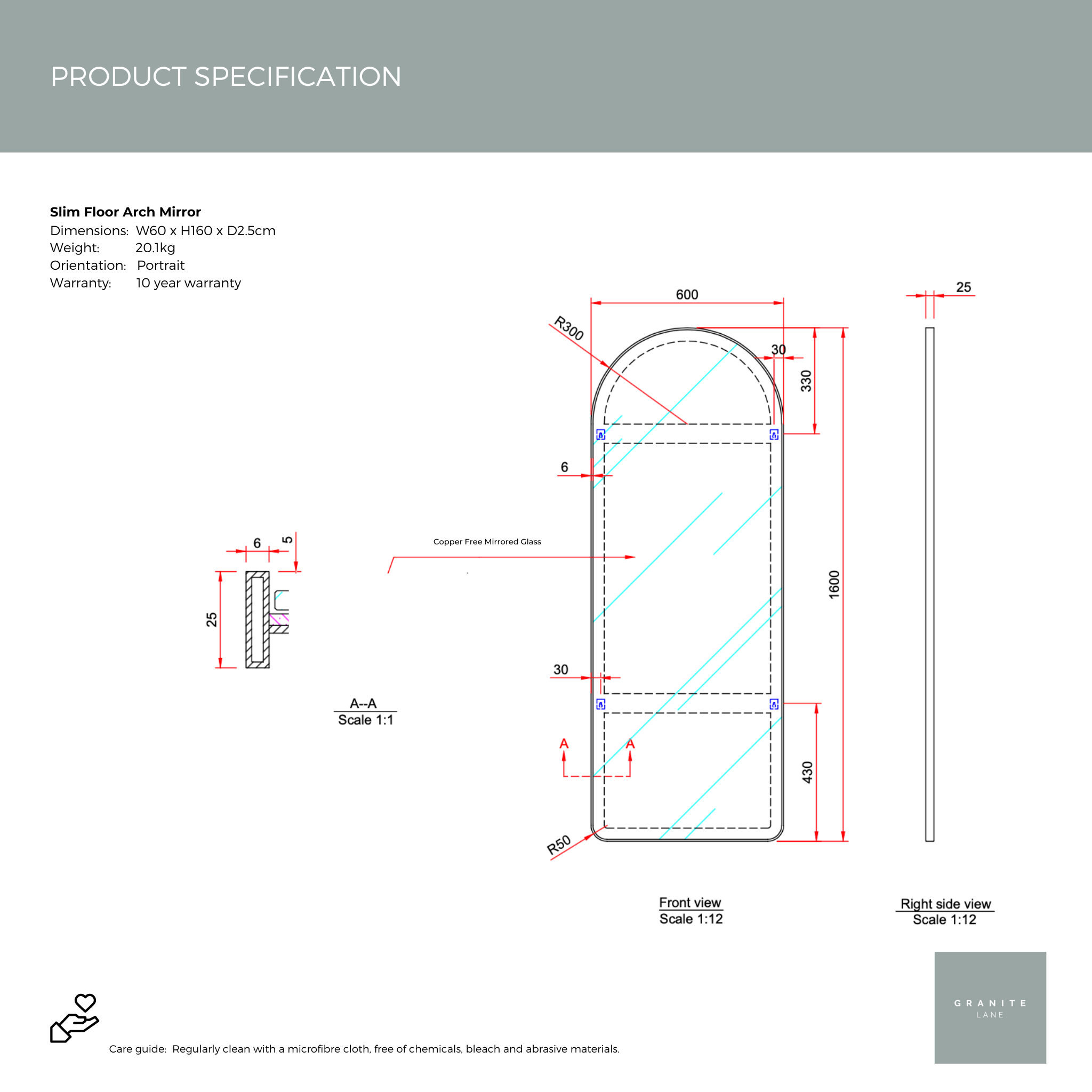 A modern arch, slimline matte black stainless steel frame with ACP backing allows these beautiful mirrors to hang in your room for years to come. Granite Lane only uses quality-glass for a crystal clear reflection.